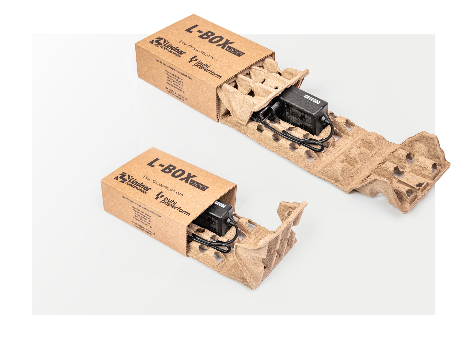 Ein robuster Außenkarton trifft auf einen passgenauen Einsatz aus geformtem Faserguss. Die Kombination schützt empfindliche Inhalte wie Elektronik oder Glas zuverlässig vor Stößen und das ganz ohne zusätzliche Polstermaterialien. Das System ist leicht, stapelbar und in verschiedenen Größen erhältlich. Der Faserguss bleibt auch bei wiederholter Nutzung formstabil und stoßdämpfend, was eine mehrfache Verwendung ermöglicht. Entwickelt für Versandprozesse, die Effizienz und Ressourcenschonung gleichermaßen verlangen.